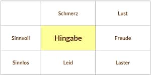 Du siehst also, dass Hingabe ein für uns sinnvoller und Leid ein sinnloser Schmerz ist. Niemand würde auf die Idee kommen, die eigenen Gefühle und Neigungen zu unterdrücken, wenn es für ihn keinen Sinn ergibt.